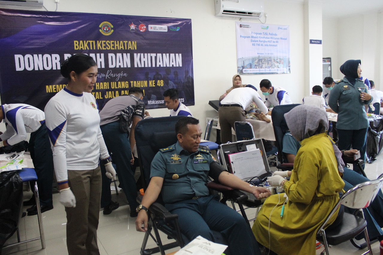 Jurnalmetropol.com, Makassar – Dengan Tema Jiwa Humanis, Semangat Nasionalis Rumah Sakit (RS) Jala Ammari Lantamal VI menggelar Bakti Kesehatan Donor Darah dan Khitanan dalam rangka memperingati HUT ke-48 RS Jala Ammari Lantamal VI, bertempat di gedung Hiperbarik RS. Jala Ammari, Rabu (16/07/2025).