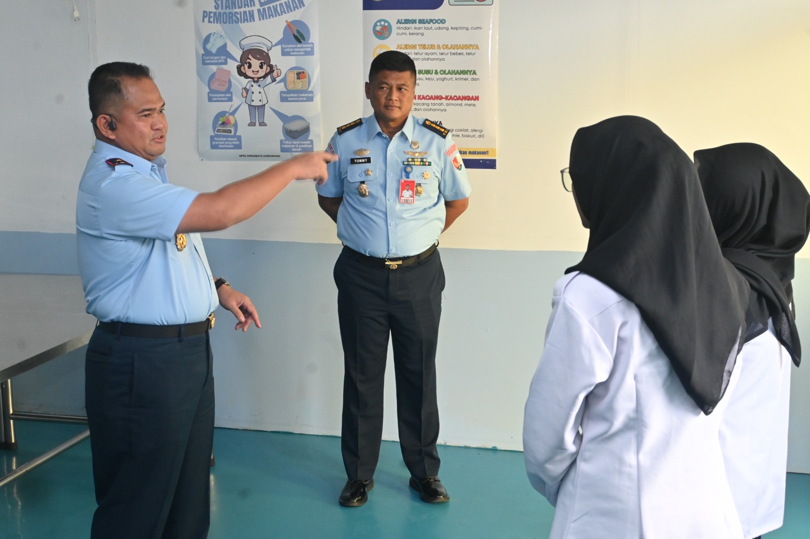 Kedatangan Danlanud diterima oleh Kepala SPPG Sirnabaya, Putri Widyani, S.M., Ahli Gizi Aulia Ainur Rahma, S.Gz., dan Asisten Lapangan Helza Fahera, S.Pd.