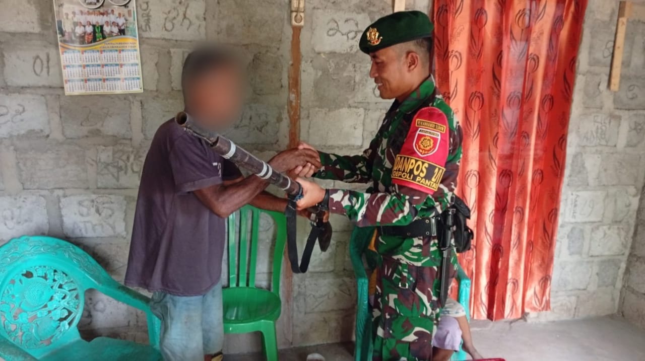 Penyerahan dilakukan langsung di kediaman warga a.n TT (64), yang bekerja sebagai petani. Berawal dari komunikasi yang dibangun secara persuasif dan humanis oleh personel Satgas Pamtas Yonarhanud 2 Kostrad, ybs menyampaikan niatnya untuk menyerahkan senjata api jenis Springfield laras panjang yang telah lama disimpannya.