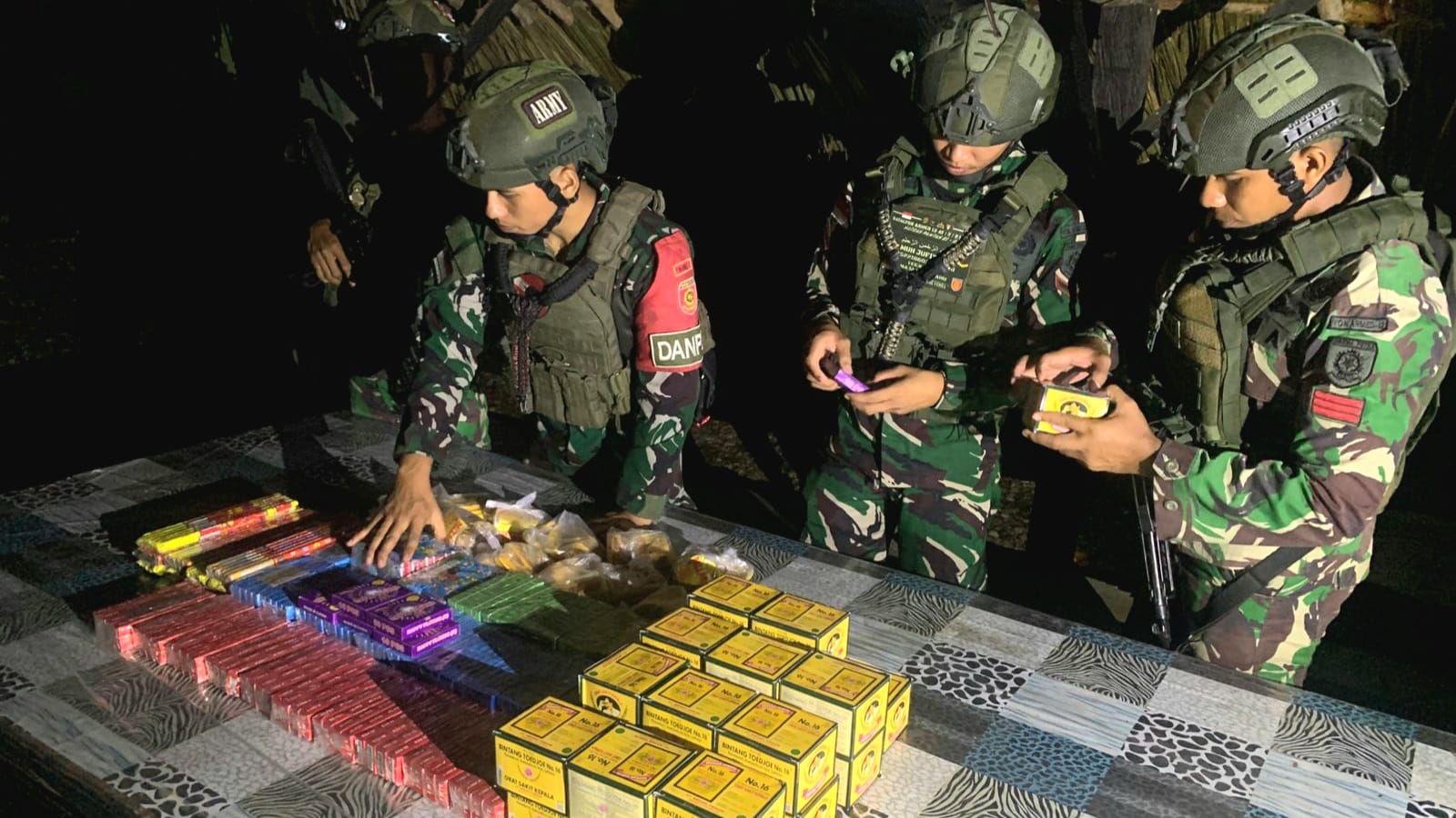 Personel kemudian menyisir area dan menemukan sejumlah barang yang ditinggalkan, antara lain petasan, Smoke SMS, Happy Flower, Magic Ball, serta berbagai jamu dan obat-obatan lainnya yang diduga sebagai komoditas penyelundupan menuju Timor Leste. Seluruh barang bukti telah diamankan ke Pos Nunura untuk proses tindak lanjut.