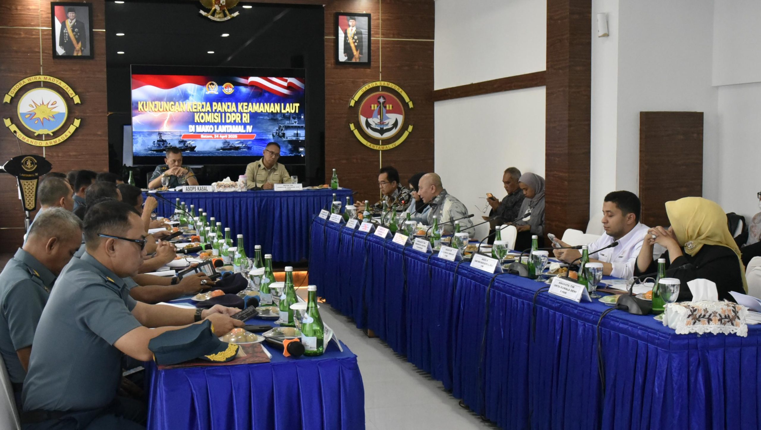 Tim Panja Kamla Komisi I DPR RI mengapresiasi dan mendukung tugas TNI AL yang berada di wilayah kerja Lantamal IV Batam, hal tersebut disampaikan saat kegiatan paparan, diskusi dan rapat dengan Panja Kamla Komisi I DPR RI, di Aula Lantamal IV Batam, pada Kamis (24/04/25).