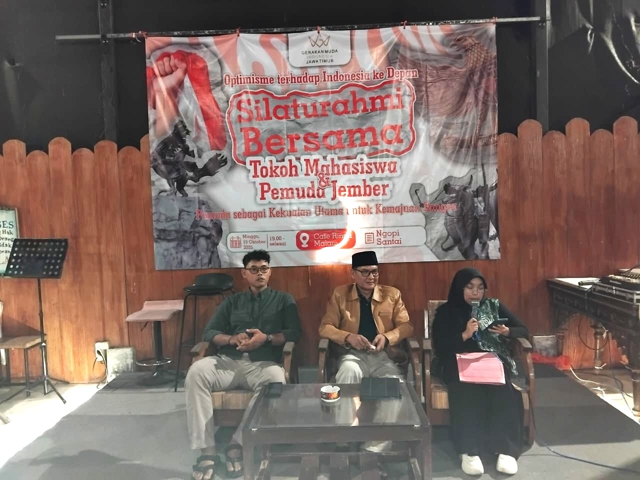 Silaturahmi dalam suasana dialog mengangkat tema optimisme terhadap Indonesia ke depan, Pemuda sebagai kekuatan utama untuk kemajuan bangsa. Acara digelar di Kafe Rindu Malam, Minggu, 19 Oktober 2025.
