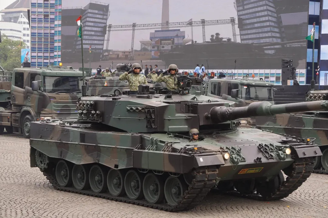 Pada momentum bersejarah ini, prajurit Yonkav 8/NSW/2 Kostrad tampil gagah mengawaki kendaraan tempur Main Battle Tank Leopard 2A4, kebanggaan TNI AD.