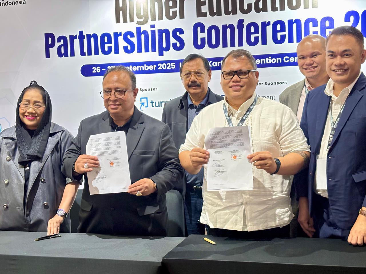 Penandatanganan MoU (Memorandum of Understanding) dengan tiga PT, masing-masing UIN Imam Bonjol Padang; Asia Pasific University of Technology & Innovation (A.P.U) Kuala Lumpur Malaysia, dan Jose Rizal Memorial State University, Philipina; dilakukan bersama dengan ketiga pimpinan perguruan tinggi tersebut di acara Higher Education Partnerships Conference (HEPCON) 2025.